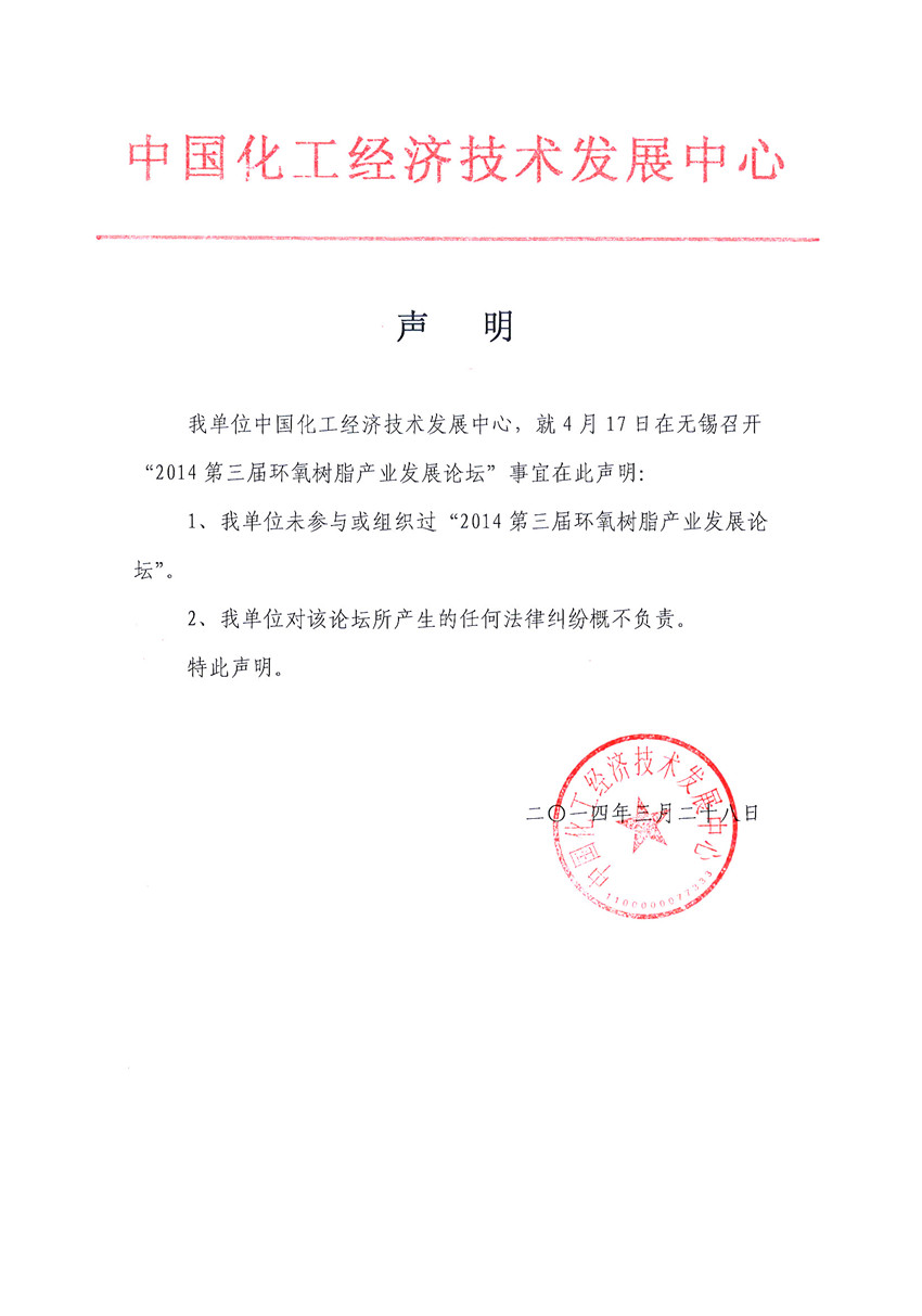 关于我单位未组织过“2014第三届环氧树脂产业发展论坛”的声明