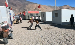 记者随后转去村头。尘土飞扬中,一排排移动板房井然林立,许多汽车、三轮车停在其间,诉说着这里曾经的美好。他们的新“家”并不宽敞,却很坚固,屋里暖烘烘的,长椅、桌子和两张床挤得满满当当。 这本是一个幸福的家庭。普布吉宗有三个哥哥、一个弟弟,她是同辈里唯一的女孩,也是家里的骄傲——她是建筑专业的大学生,毕业后便加入扎布耶盐湖提锂项目工作。如今,弟弟也以她为榜样,考上了西藏民族大学。然而一场地震裂开大地,也撕碎了她的生活。面对一片废墟,悲痛中的普布吉宗强打精神照看全家,试图以此把阿妈的影子留在她第25个春天里。 幸运的是,及时有力的救援减轻了这个家庭的伤痛。普布吉宗说,地震的破坏很大,房屋损毁尤其严重,但目前他们生活所需的物资很充足,吃穿用度不愁,水电甚至无线网络都已恢复。中国农业银行也在几千米外一间板房里开始营业。 板房外,一群小孩踢着足球,几个穿藏袍的女人看着他们嬉闹。达瓦的小儿子拉巴顿珠玩累了,进屋撕开一个大碗面,普布吉宗给他倒上开水,又拿出煮熟的土豆给他吃。看到记者离开,小家伙挥手道“拜拜”。